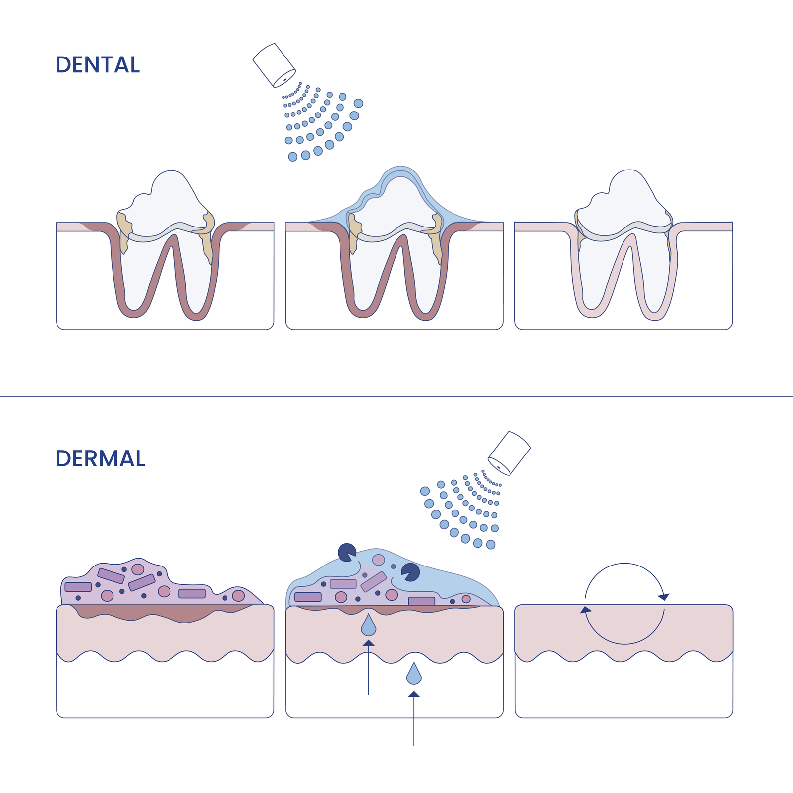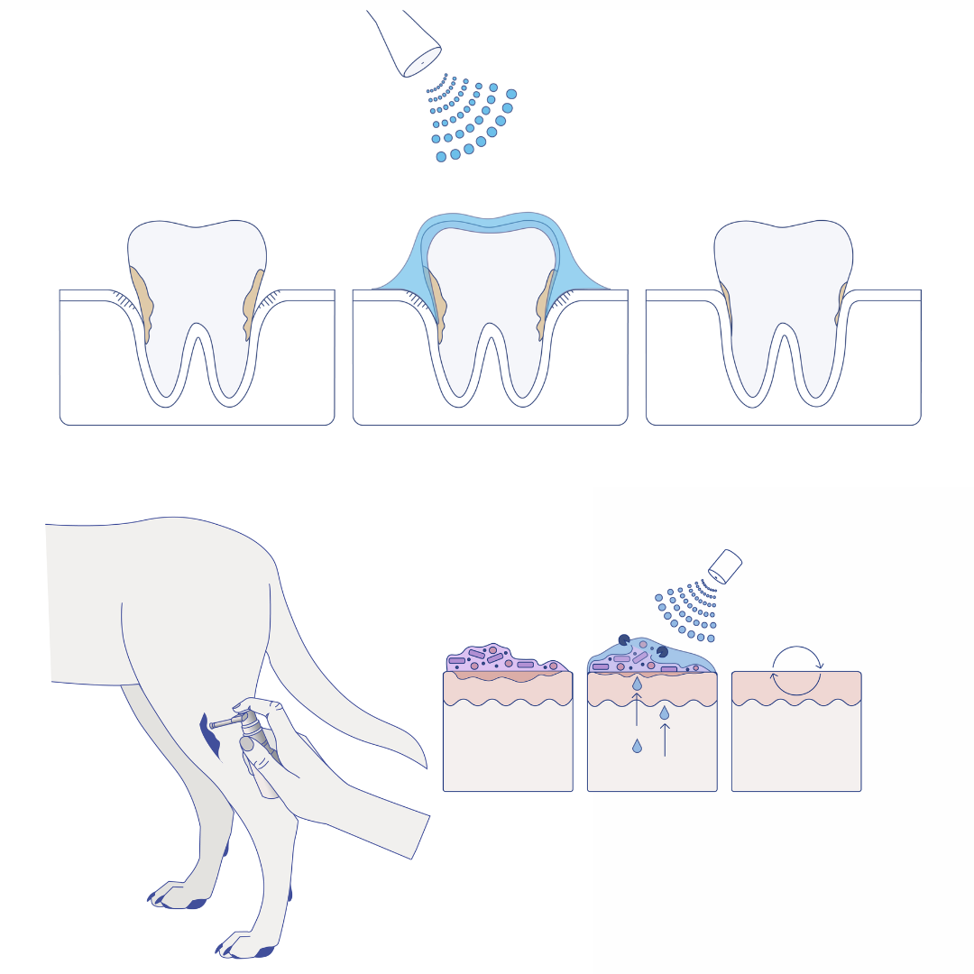 Kalzymes hud- och tandvårdsprodukter påverkar mikrobiomet positivt genom att den goda bakteriefloran får möjlighet att blomstra. Fallstudien till höger visar resultatet på en fransk bulldogg med mild dermatit i hudvecken kring nosen och som behandlats med Kalzyme Dermal Gel. Före behandlingen hade mikrobiomet en mycket liten bakteriell mångfald vilket tyder på ohälsa. Efter 28 dagars behandling ökade mikrobiomets mångfald avsevärt. En mångfald olika goda bakterier syntes och varken jästceller eller inflammatoriska celler påvisades.