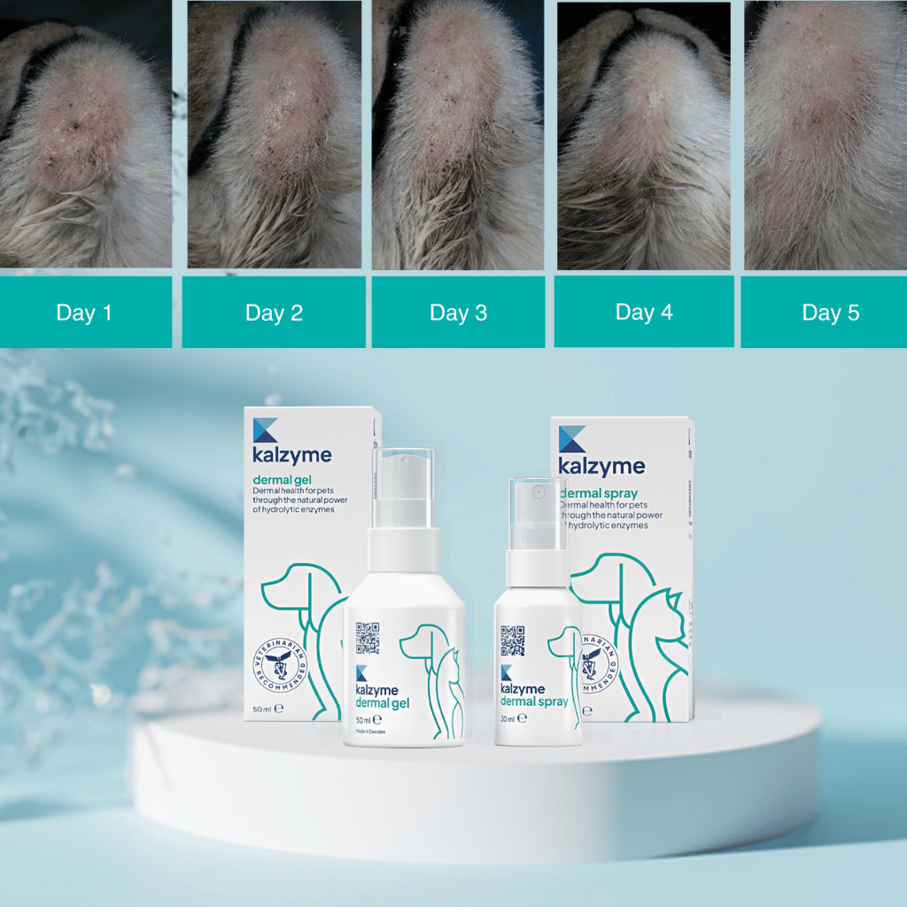 Elakartade bakterier och svamporganismer kan lätt breda ut sig och idag är hudproblem bland de vanligaste besvären på djursjukhus. Kalzyme Dermal Gel och Spray skapar en aktiv barriär för att minska mikrobiell vidhäftning samtidigt som den upprätthåller ett friskt mikrobiom. Kalzyme balanserar, exfolierar och återfuktar huden samtidigt som irritationer minskar.